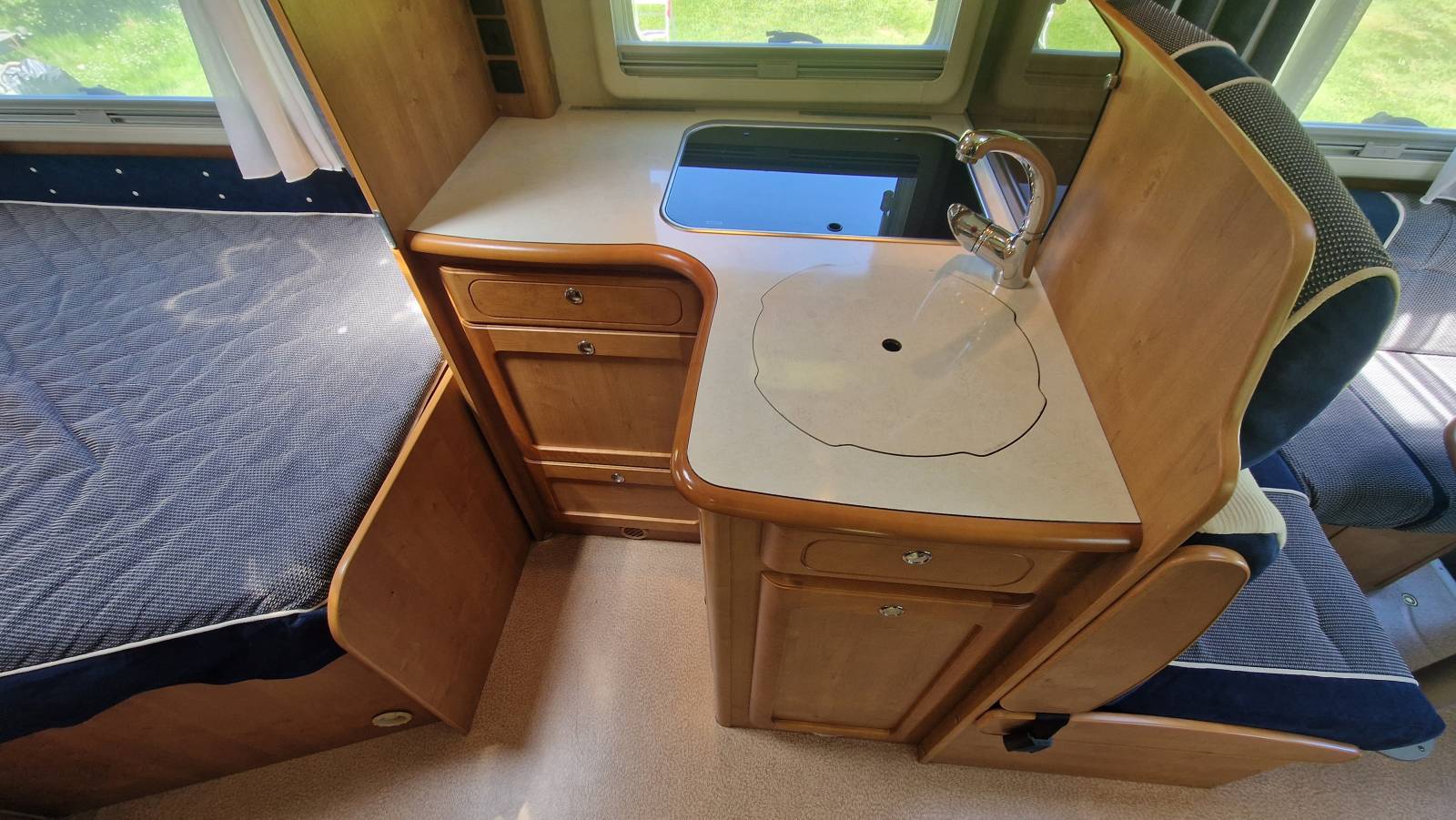 Bel intégral de marque française renommée pour sa qualité de fabrication à caractère haut de gamme. Implantation idéale pour accueillir un couple ou toute une petite famille : couchages douillets avec lit à l’arrière permanent à la française + grand lit de pavillon, de nombreux rangements ainsi qu’une salle d'eau lumineuse avec douche et WC séparés.